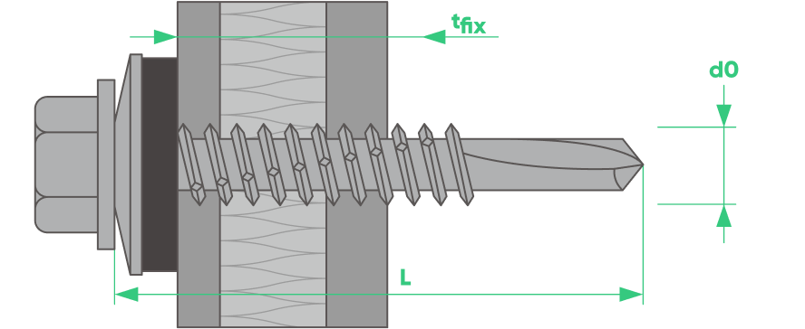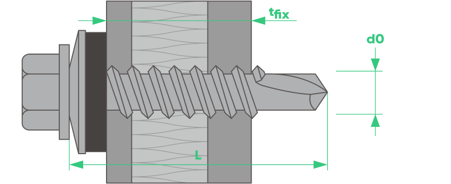 Для сэндвич-панелей по бетону FIXOL с шайбой и прокладкой EPDM Ruspert